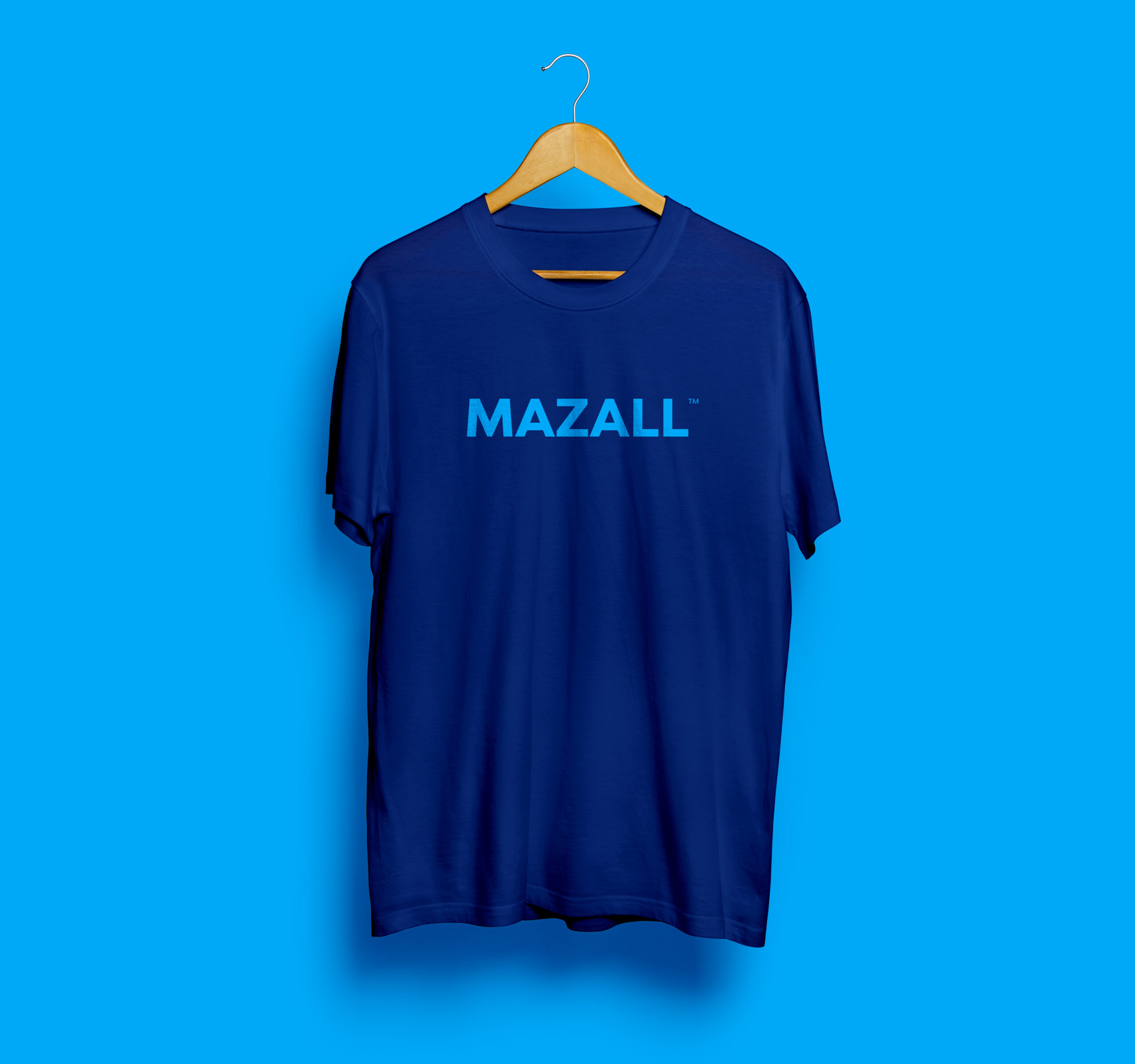 - Graphic: Bold Mazall wordmark logo on the chest in a dynamic blue gradient print.